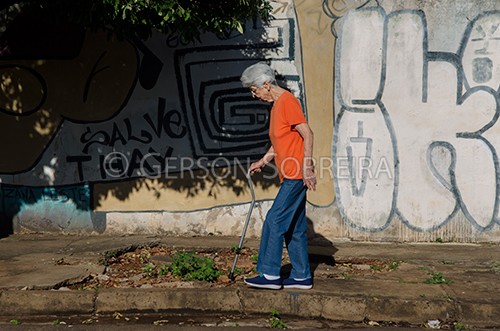 Keywords: Parana, Bengala, 2017, Londrina, Horizontal, Idosa, Mulher, Ruth Nunes Sobreira, Calçada, Caminhando, Buraco, Rua, Mobilidade |