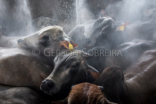 Keywords: Horizontal, Shower, Bath, Cattle Livestock, Bovine, Slaughterhouse, Industry, Belen, Paraguay, 2017, Nelore |