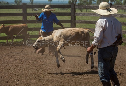 Keywords: Vaqueiro Peao Cowboy, Aguero-Cue, 2018, Horqueta, Paraguay Paraguai, Curral, Gado Pecuaria, Bovino, Bezerro, Nelore, Horizontal, Curando, Imobilizando |