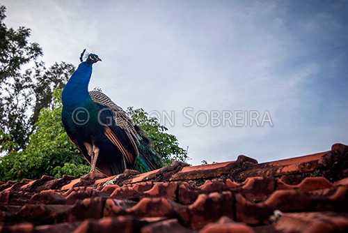 Horizontal, Telhado, 2018, Parana, Querencia do Norte, Fauna, Pavao, Ave, Passaro, Pavo cristatus