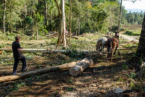 Keywords: Extrativismo, Traçao animal, Transporte, Mallet, 2018, Parana, Serra do Tigre, Cavalo, Arraste, Tora, Puxando, Parelha, Horizontal, Arvore |