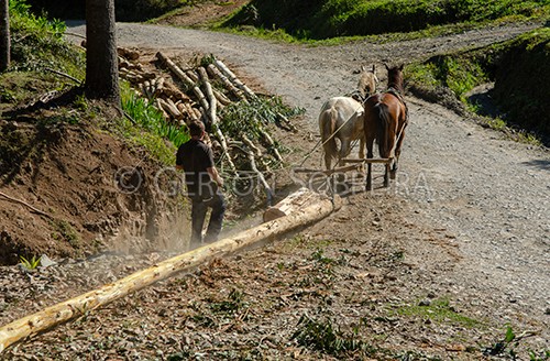 Título: Arraste de toras com parelha de cavalos |