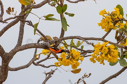 Keywords: 2018, Cerrado, Horizontal, Minas Gerais, Chapada Gaucha, Serra das Araras, Fauna, Ave, Passaro, Sofre, Icterus jamacaii, Corrupiao, Ipe, Florido, Flor |