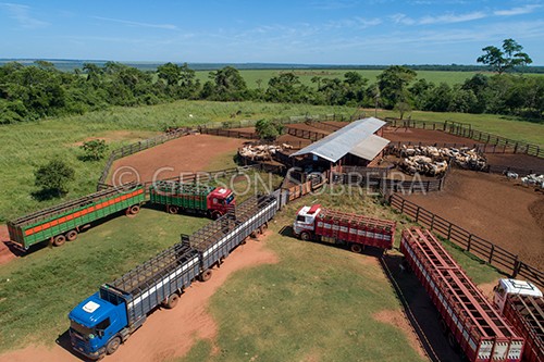 Keywords: 2018, Transport, Herdsman, Heavy truck, Corral, Embark, Paraguay, Arroyito, Horizontal, Cattle Livestock, Bovine, Aerial |
