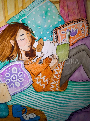 2019, Cao Cachorro, Leitura, Ilustradora, Desenho, Aquarela, Pintura, Vertical, Londrina, Parana