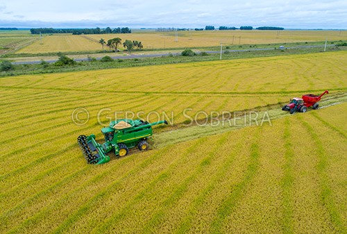 Keywords: Horizontal, Pampa, Aerial view, Rio Grande do Sul, 2020, Rice, Agriculture, Quarai, Harvest, Harvester |