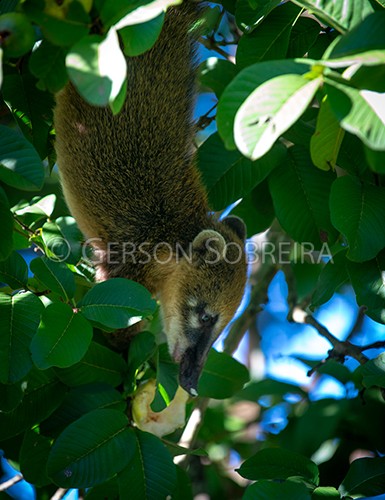 Keywords: 2020, Sao Paulo, Paranapanema, Fauna, Quati-de-cauda-anelada, Quati, Nasua nasua, Vertical, Comendo, Fruta |