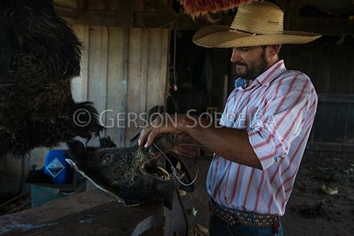 Keywords: 2020, Sus scrofa, Javali, Empalhado, Taxidermia, Vaqueiro Peao Cowboy, Horizontal, Parana, Florestopolis |