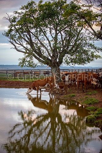 Keywords: 2020, Sao Sepe, Braford, Rio Grande do Sul, Cattle Livestock, Bovine, reflection, Water, Landscape, Tree, Cow group, Vertical |