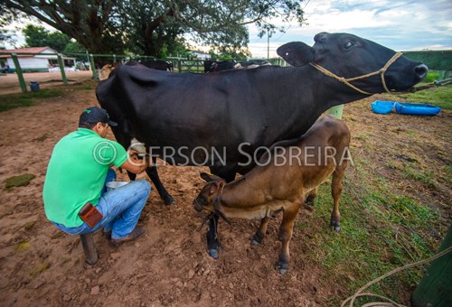 Keywords: 2021, Femea, Mato Grosso do Sul, Pedro Gomes, Horizontal, Gado Pecuaria, Bovino, Vaca, Bezerro, Ordenha, Leite, Manual, Vaqueiro Peao Cowboy, Balde |