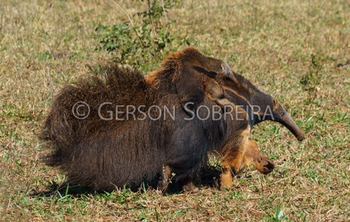Título: Tamanduá-bandeira com cria nas costas |
