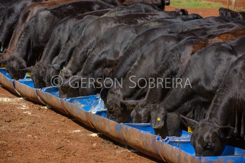 Keywords: Horizontal, Cattle Livestock, Bovine, Parana, Londrina, 2021, Firstborn, Feeder, Eating, Ration, Brangus, Cow, Female, Nutrition |