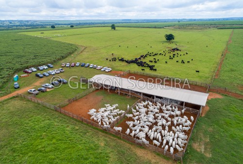 Keywords: Parana, Jardim Olinda, 2023, Horizontal, Cattle Livestock, Bovine, Cow group, Group, Nelore, Corral, Field day, Aerial view |