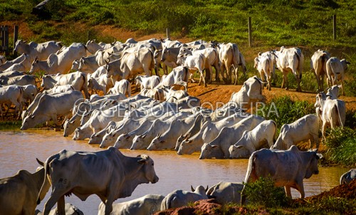Horizontal, Agua, Bebendo, Nelore, Vaca, Femea, Gado Pecuaria, Bovino, Rondonia, Ariquemes, 2023