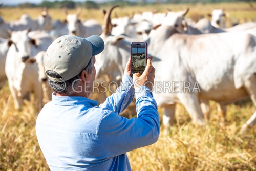 Keywords: 2024, Pecuarista, Zootecnista, Celular, Smartphone, Filmando, Gado Pecuaria, Bovino, Santa Vitoria, Minas Gerais |