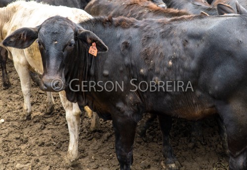 Keywords: 2025, Curral, Gado Pecuaria, Bovino, Parana, Horizontal, Sapopema, Bezerro, Cruzamento, 1/2, Meio-sangue Meio sangue, Angus-Nelore, Doença, Bicheira, Miiase, Berne, Dermatobia hominis |