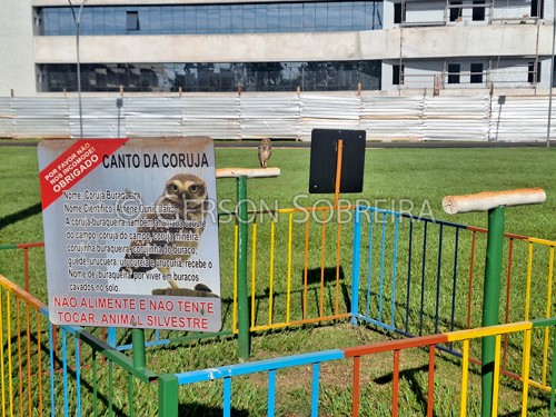 Keywords: Londrina, Proteçao, Toca, Speotyto cunicularia, Coruja-buraqueira Coruja buraqueira, Passaro, Ave, Fauna, Horizontal, Prefeitura, Parana, 2025, Placa, Sinalizaçao |
