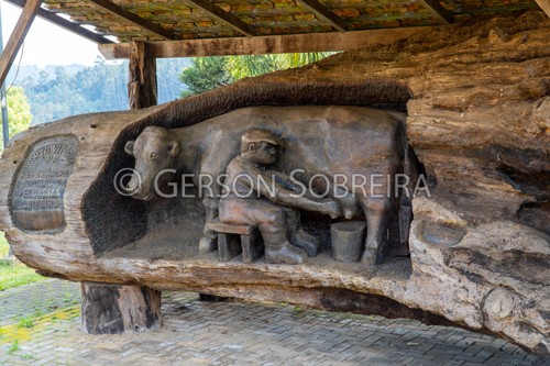 Keywords: 2025, Itacir Bortoloso, Horizontal, Parana, Porto Vitoria, Madeira, Escultura, Vaca, Ordenha, Ordenhador, Gado Pecuaria |