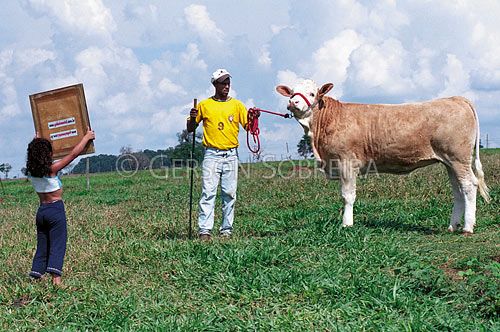 Keywords: Animal, Pasto Pastagem, Piquete, Gado Pecuaria, Bovino, Vaca, Simental, Gente, Homem, Adulto, Trabalho, Vaqueiro Peao Cowboy, Menina Criança, Novilha, Objeto, Espelho, Manejo, Preparo, Foto, Ubirajara, Sao Paulo |