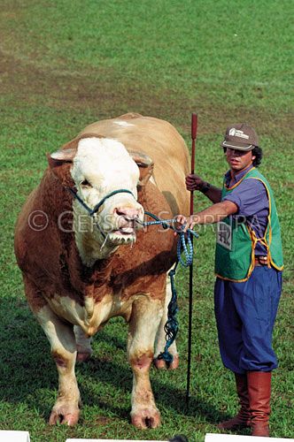 Keywords: Animal, Stick cane, Milan, Gaucho, Cowpoke Buckaroo Cowboy, Job, Man, Adult, People, Judgement, Ring, Show, Event, Simmental, Bull, Male, Cattle Livestock, Bovine, Londrina, Parana |