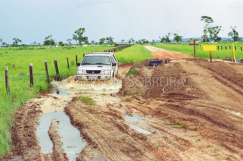 Keywords: Bridge, Track, Mud, Land, Ground, Soil, Flooded, Landscape, Truck, Earth road, Road, Transport, Detour, Water, Mato Grosso do Sul, Coxim, Environment, Biome, Pantanal, 2003 |