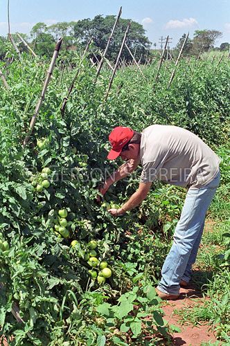 Keywords: Foot, Rural worker, Job, Man, Adult, People, Stick cane, Agriculture, Vertical, Horticulture, Potherb Verdure, Tomato, Handling, Stacked, Green, Fruit, Estiva Gerbi, Sao Paulo |