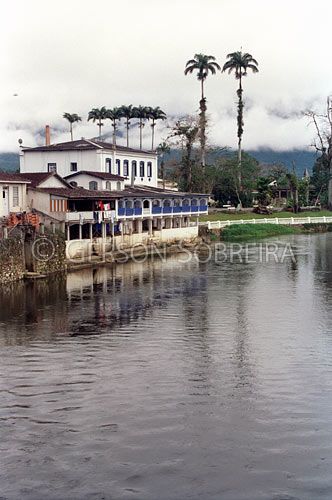 Keywords: Rio Nhundiaquara, Rio, Riacho, Agua, Paisagem, Morretes, Parana, Casario, Patrimonio historico, Urbano, Predio, Edificio, Arquitetura, Vertical, Roystonea oleracea, Palmeira, Arecaceae, Imperial |