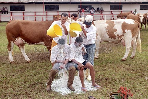 Keywords: Show, Bucket, Prize, Milk bath, Dairy tournament, Event, Fleckvieh, Simmental, Udder, Cow, Cattle Livestock, Bovine, Animal, Parana, Maringa, Horizontal |