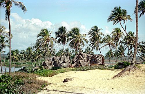 Keywords: Cocos nucifera, Coqueiro, Coco, Nativa, Palmeira, Arecaceae, Flora, Natureza, Rustico, Casa, Arquitetura, Praia, Mar, Agua, Paisagem, Zona Costeira, Bioma, Meio ambiente, Aldeia hippie, 1999, Horizontal, Bahia, Arembepe |