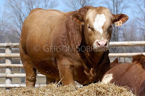 Animal, Cruzado, Simangus, Piquete, Touro, Gado Pecuaria, Bovino, Simental-Angus, Markdale, Ontario, Canada, 2005