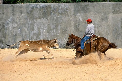 Keywords: Animal, Garrote, Vaqueiro Peao Cowboy, Trabalho, Homem, Gente, Tocando, Apartaçao, Manejo, Quarto-de-Milha Quarto de Milha, Cavalo, Equino, 2003  |