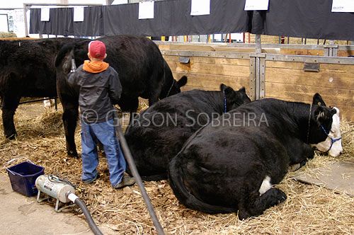 Keywords: Menino Criança, Black, Simental, Preparo, Vaca, Animal, Red, Julgamento, Pista, Gado Pecuaria, Bovino, Grupo, Gente, Exposiçao, Evento, Royal Winter Fair 2004, Toronto, Ontario, Canada |