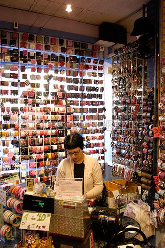Keywords: Store, Trade, Shop, Woman, Queen Street, Urban, People, Toronto, Ontario, Canada, Object, Ornament, Bracelet, Supplies, Leather, Belt, Adult, Job, Seller, Box, 2004  |