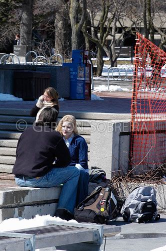 Keywords: Stairs, Knapsack, Student, Courtship, Man, Young man, Couple, Study, Sun, Young woman, Ice, Square, Campus, Building, Edifice, Urban, Architecture, Winter, Seasons, Cold, Guelph, People, Ontario, Canada, University, 2005 |
