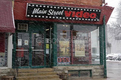 Keywords: Vitrine, Locadora video, Comercio, Venda, Markdale, Ontario, Canada, Rua, Paisagem, Natureza, Neve, Estaçoes, Inverno, Frio, Nevando, 2005 |
