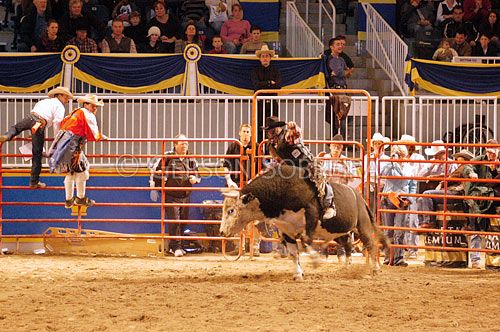 Keywords: Arena, Touro, Macho, Gado Pecuaria, Bovino, Animal, Vaqueiro Peao Cowboy, Esporte, Horizontal, Trabalho, Homem, Adulto, Canada, Ontario, Toronto, Evento, Exposiçao, Royal Winter Fair 2005, Gente, Rodeio, Salva-vidas Salva vidas |