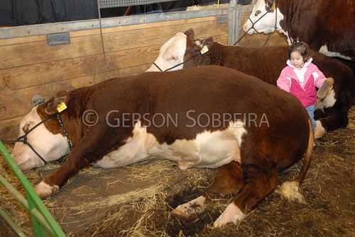 Keywords: Fun, Toy, Roundup, Touch, Lay down, Resting, Rest, Hereford, Cattle Livestock, Bovine, Girl, Event, Royal Winter Fair 2006, Toronto, Ontario, Canada, Horizontal, People, Animal  |