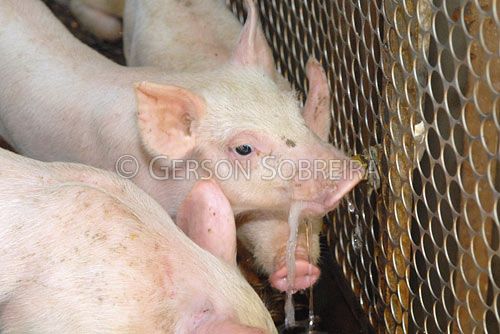 Keywords: Horizontal, Creche, Cruzado, Embrapa MS60, Leitao, Parana, Cambara, Animal, Suino Suinos Suinocultura, Porco, Dalland, C40, Granja, Instalaçao, Galpao, Detalhe, Cabeça, Boca, Bebedouro, Agua, 2007  |