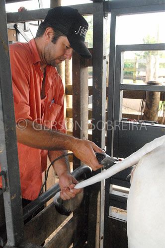Keywords: Handling, Nelore, Heifer calf, Cattle Livestock, Bovine, Animal, Ubirajara, Sao Paulo, Vertical, Shearing, Shear, Shears, Trimming, Cutting, People, Man, Adult, Job, Cowpoke Buckaroo Cowboy, Construction, Stem, Squeeze chute, 2007 |