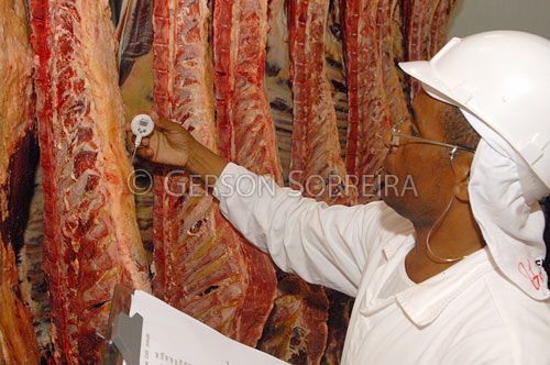 Keywords: Carne, Corte, Homem, Adulto, Gente, Frigorifico, Industria, Maranhao, Igarape do Meio, Gado Pecuaria, Bovino, Animal, Carcaça, Camara frigorifica, Frio, Resfriamento, Horizontal, Termometro, Temperatura, Controle, Mediçao, 2007 |