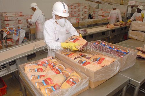 Keywords: Horizontal, Embalagem, Contra-file Contra file, Animal, Gado Pecuaria, Bovino, Igarape do Meio, Maranhao, Industria, Frigorifico, Gente, Homem, Adulto, Carne, Sala, Esteira, Caixa, Picanha, Mignon, 2007  |