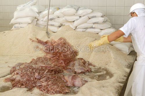 Keywords: Manta, Carne, Bovina, Salgada, Curada, Desidratada desidratado, Jerked beef, Sala, Homem, Adulto, Gente, Frigorifico, Industria, Maranhao, Igarape do Meio, Animal, Preparo, Horizontal, Salga, Sal, Desidrataçao, Pilha, 2007 |