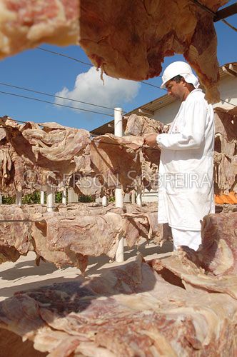 Keywords: Desidrataçao, Preparo, Animal, Igarape do Meio, Maranhao, Industria, Frigorifico, Gente, Homem, Adulto, Sala, Jerked beef, Salgada, Carne, Bovina, Curada, Desidratada desidratado, Varral, Manta, Sol, Vertical, Curado, 2007 |