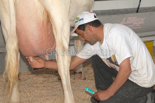 Keywords: Cream, Remedy, Medicating, Medicine, Pulverize, Teat nipple, Udder, Castro, Parana, Horizontal, Castrolanda, Agroleite, Animal, Cattle Livestock, Bovine, Cow, Holstein Friesian, Holstein, People, Man, Adult, Handling, Milkman, 2007 |