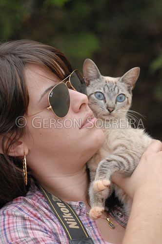 Vertical, Carinho, Tocando, Toque, Oculos, Gata, Gato, Animal, Domestico, Mulher, Moça, Jovem, Gente, Parana, 2008