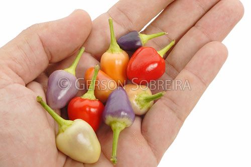 Keywords: Horizontal, Hand, Bolivian, 2008, Agriculture, Spice, Spice, Pepper, Capsicum annuum, Londrina, Parana, Rainbow, Light, White background, White |