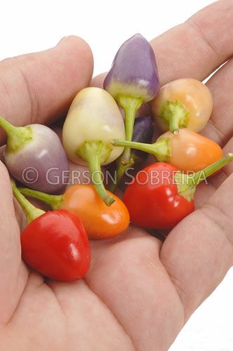 Keywords: Hand, Bolivian, Vertical, 2008, Agriculture, Spice, Spice, Pepper, Capsicum annuum, Londrina, Parana, Rainbow, Light, White background, White |
