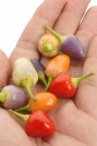 Keywords: Hand, Bolivian, Vertical, 2008, Agriculture, Spice, Spice, Pepper, Capsicum annuum, Londrina, Parana, Rainbow, Light, White background, White |