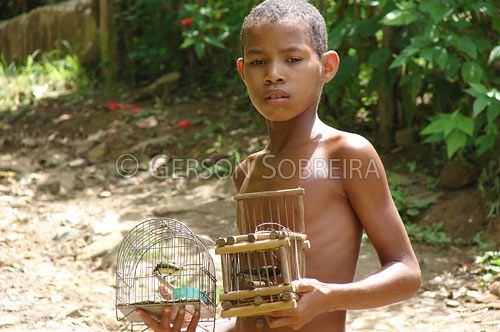 Keywords: Gaiola, Ilegal, Menino Criança, Gente, Comercio, Venda, Passaro, Ave, Fauna, Animal, MM, 2008, Horizontal, Bahia, Itacare |
