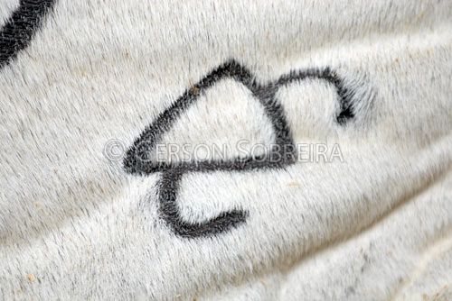 Keywords: Ferro, Ferrete, Marca, Fogo, Ferrar, Marcar, Identificaçao, Tatuagem, Manejo, Pelo, Pelagem, Textura, Pele, Detalhe, Horizontal, Brahman, Vaca, Gado Pecuaria, Bovino, Animal, Sao Paulo, 2008, Avare |
